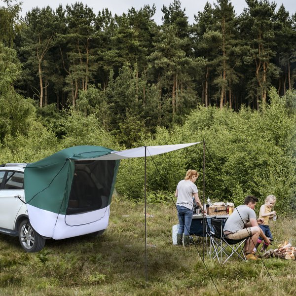Home > 140*180*167cm Silver Tape Hardcore SUV Rear Tent Camping Tent Military Green Plus White Gray