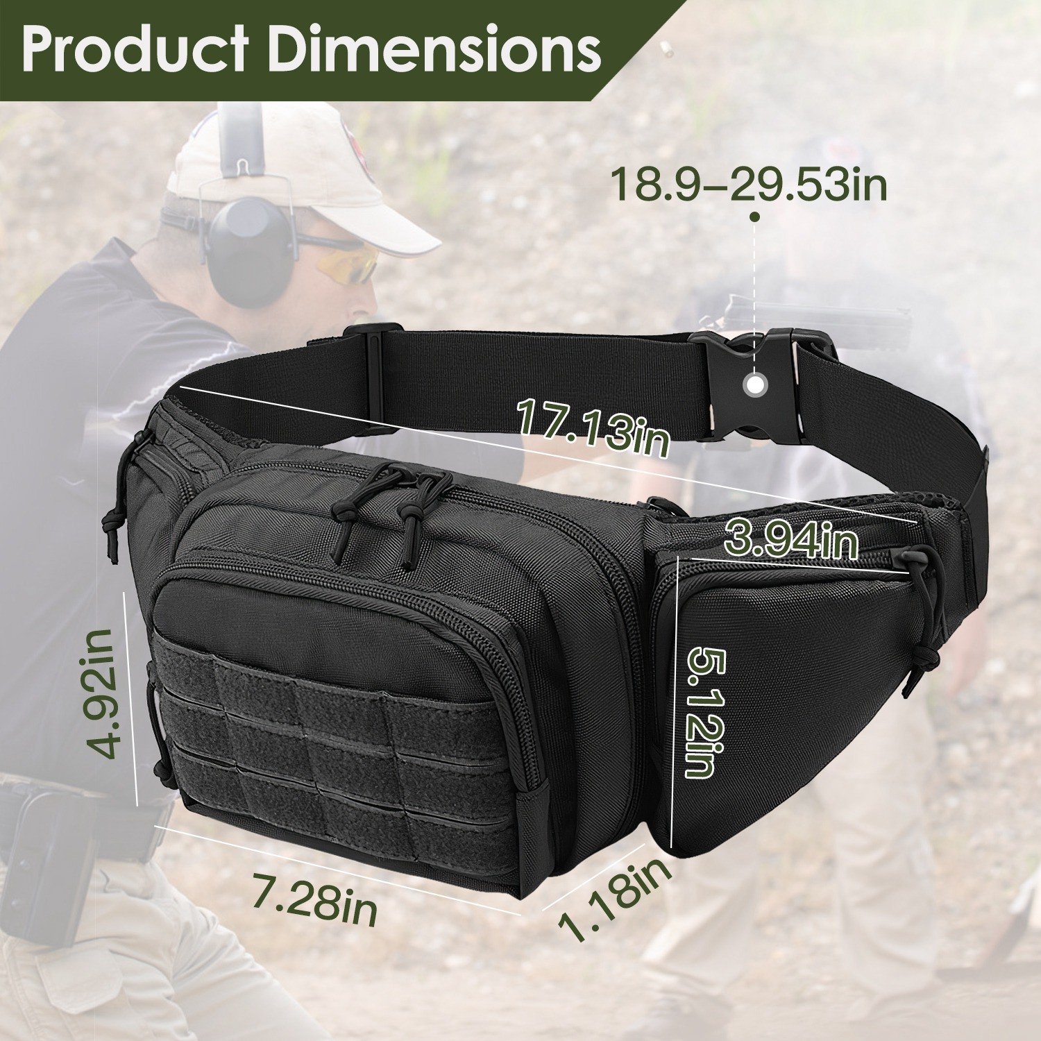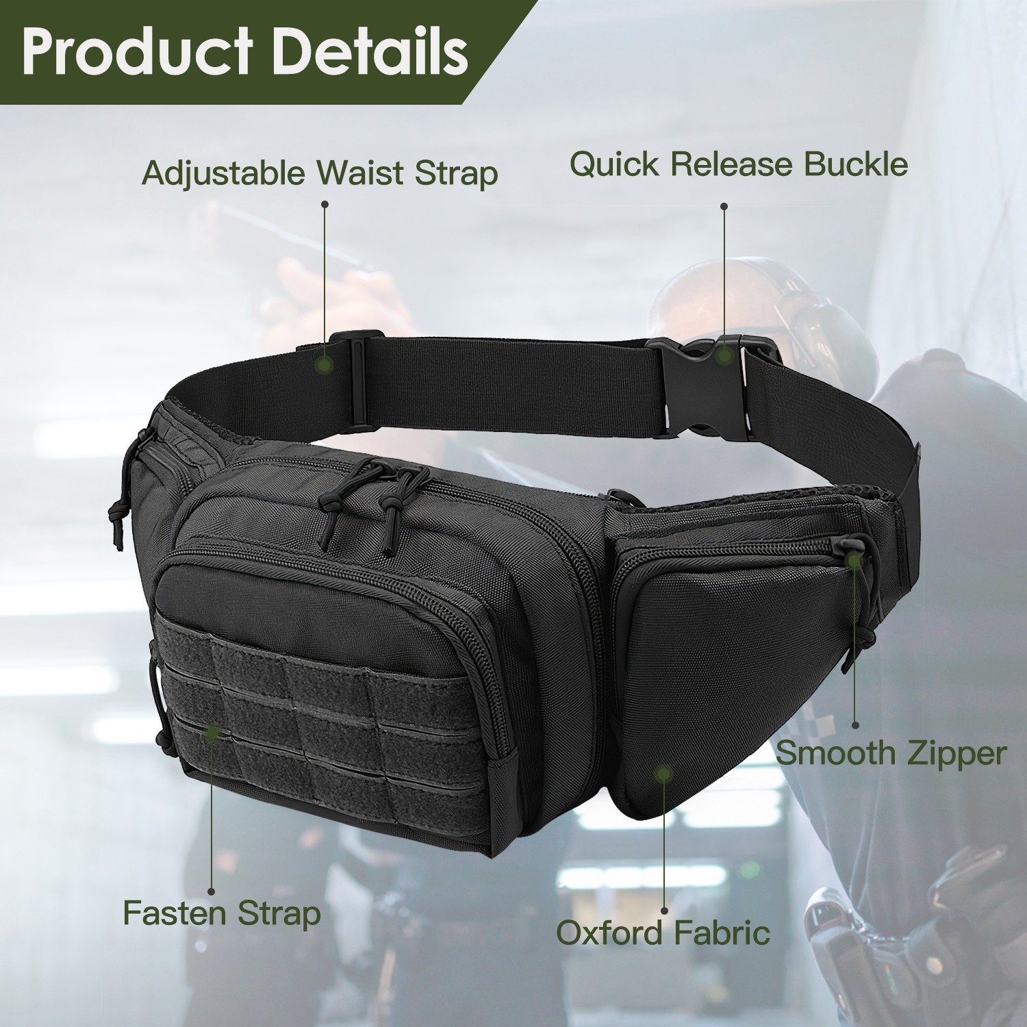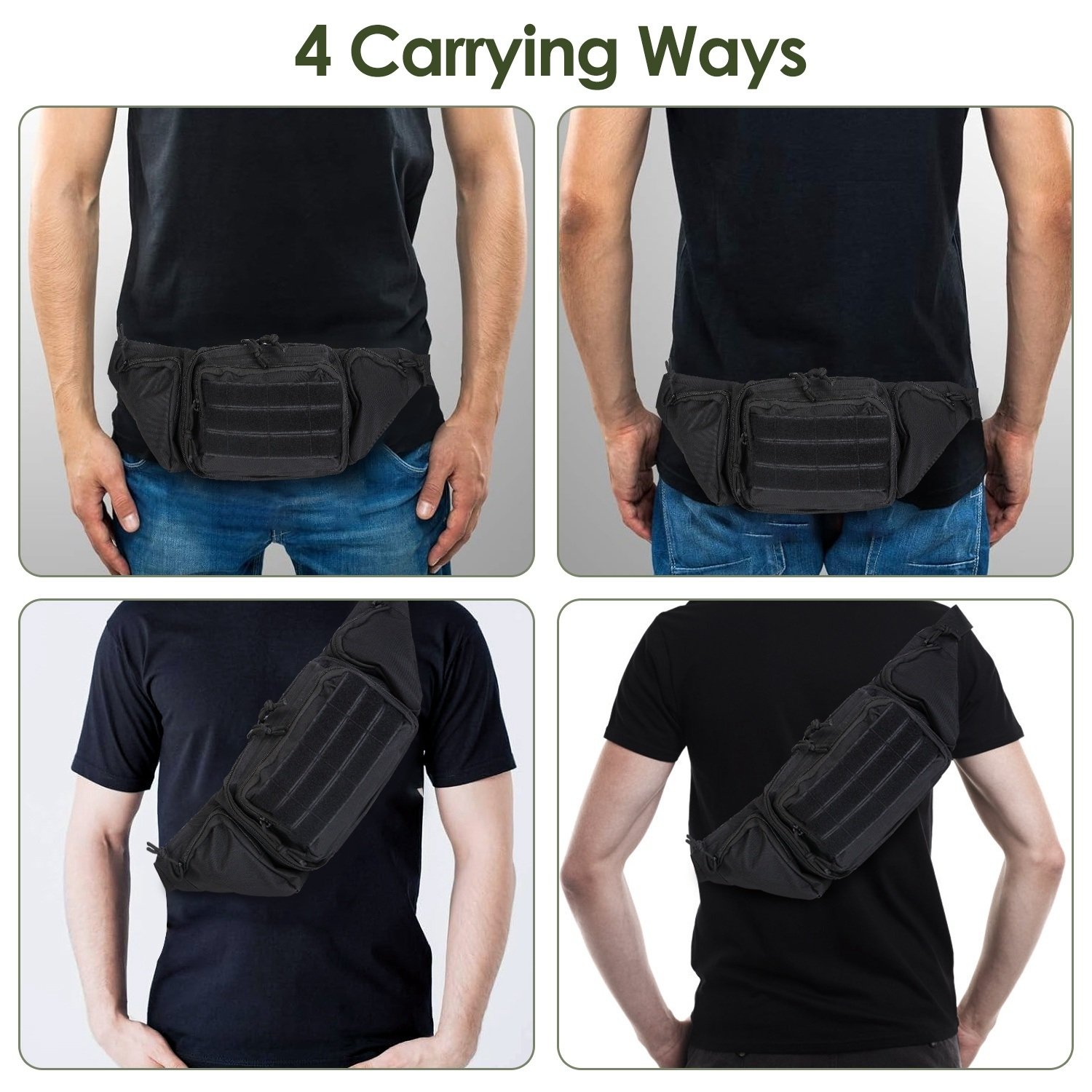 *Quick Release Buckle*:Our tactical fanny pack for men designs with a quick release buckle,which allows for rapid and easy access to the bag's contents. You can carry this bag on the front,on the back,or use it as a crossbody bag.